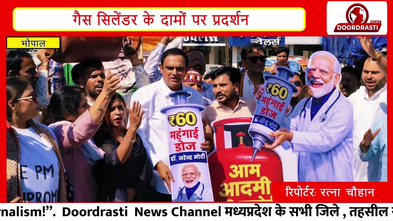 महंगाई और गैस सिलेंडर के बढ़ते दामों के खिलाफ जिला कांग्रेस भोपाल शहर का अनोखा प्रदर्शन, पीएम मोदी को दी “डॉक्टर” की उपाधि
